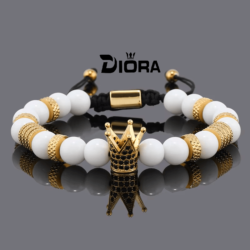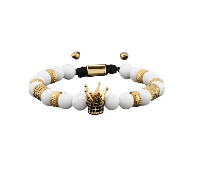 Brățară Bărbătească cu Mărgele din Piatră Naturală & Charm Coroană – Putere și Eleganță