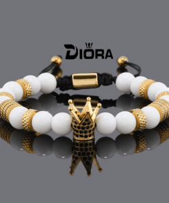 Adaugă un plus de forță și stil masculin look-ului tău cu această brățară premium, realizată din mărgele din piatră naturală și decorată cu un charm coroană din oțel inoxidabil. Simbol al puterii, succesului și regalității, acest accesoriu este perfect pentru bărbații care apreciază bijuteriile sofisticate și statement.