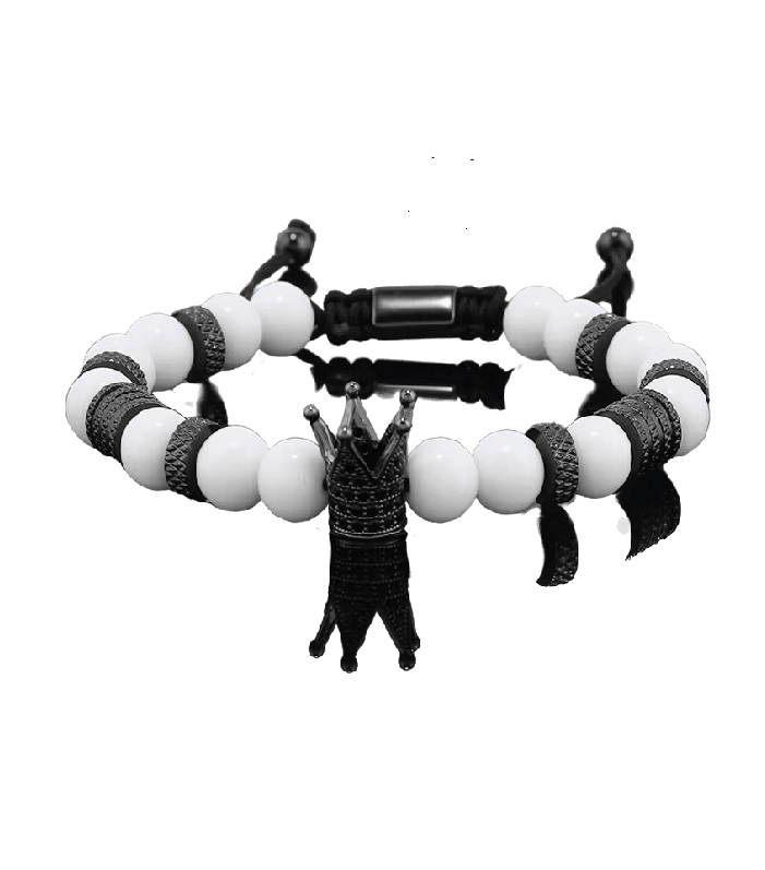 Karkötő Bărbătească Mărgele din Piatră Naturală & Charm Coroană, szín fehér fekete