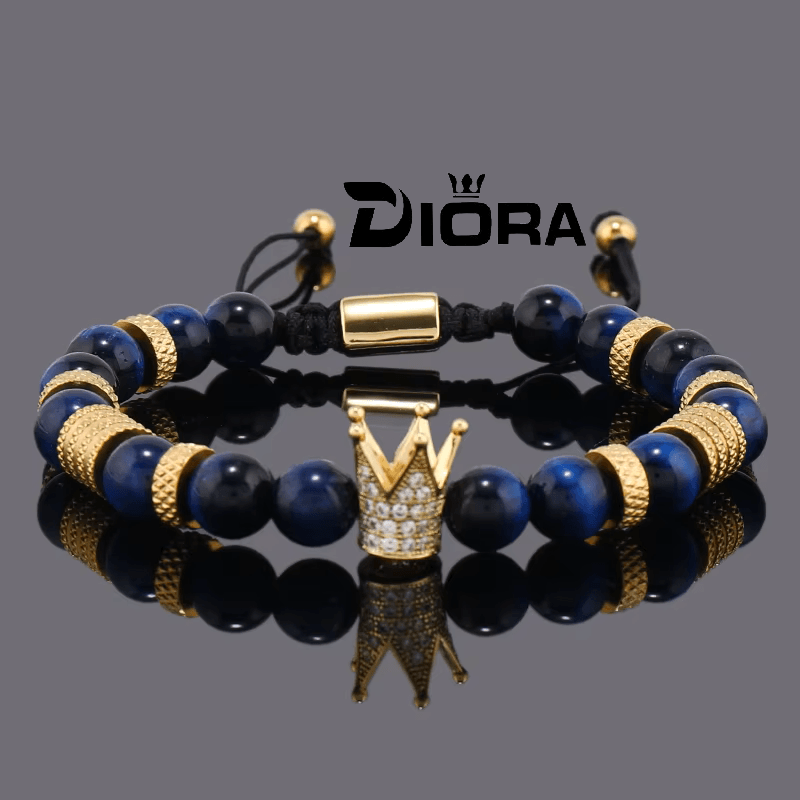 Férfi természetes kő gyöngy és korona charm karkötő – Power and Elegance