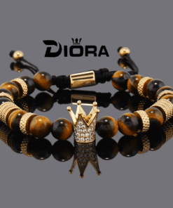 Adaugă un plus de forță și stil masculin look-ului tău cu această brățară premium, realizată din mărgele din piatră naturală și decorată cu un charm coroană din oțel inoxidabil. Simbol al puterii, succesului și regalității, acest accesoriu este perfect pentru bărbații care apreciază bijuteriile sofisticate și statement.