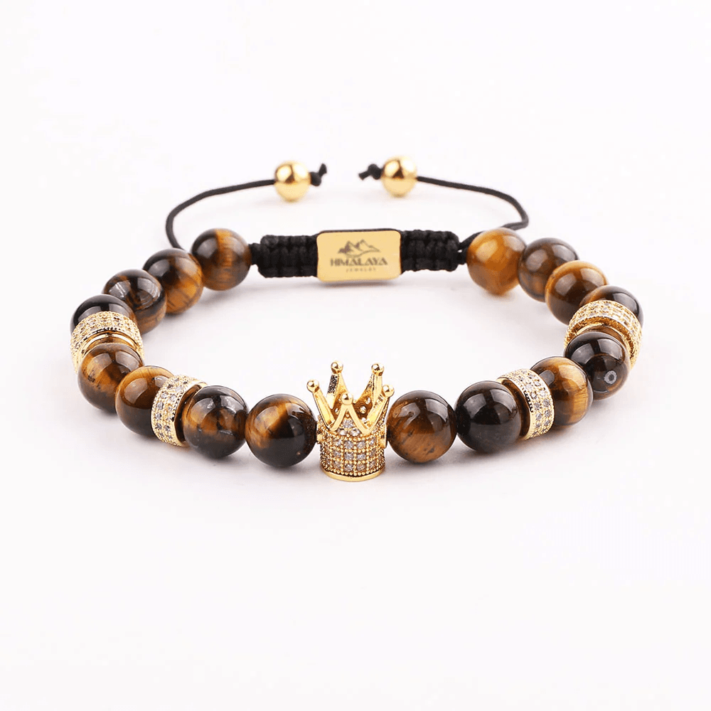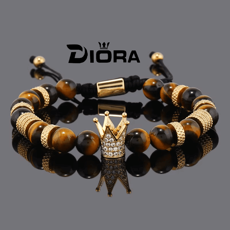 Brățară Bărbătească cu Mărgele din Piatră Naturală & Charm Coroană – Putere și Eleganță