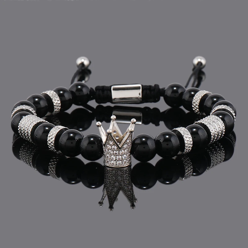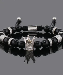 Elegáns férfi karkötő, amely a természetes kövek kifinomultságát ötvözi a rozsdamentes acél korona impozáns részleteivel. A személyiséggel rendelkező ékszereket értékelő nők és férfiak számára tervezett darab tökéletes egyensúlyt kínál a stílus, a szimbolizmus és a tartósság között.