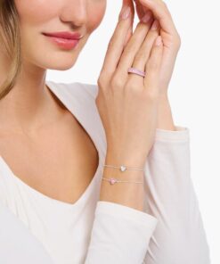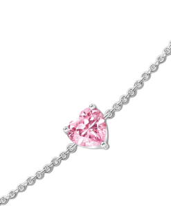 Ezüst karkötő rózsaszín kötél szívvel | Elegáns design cirkóniákkal