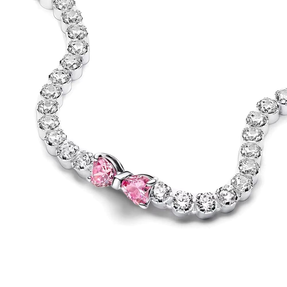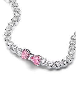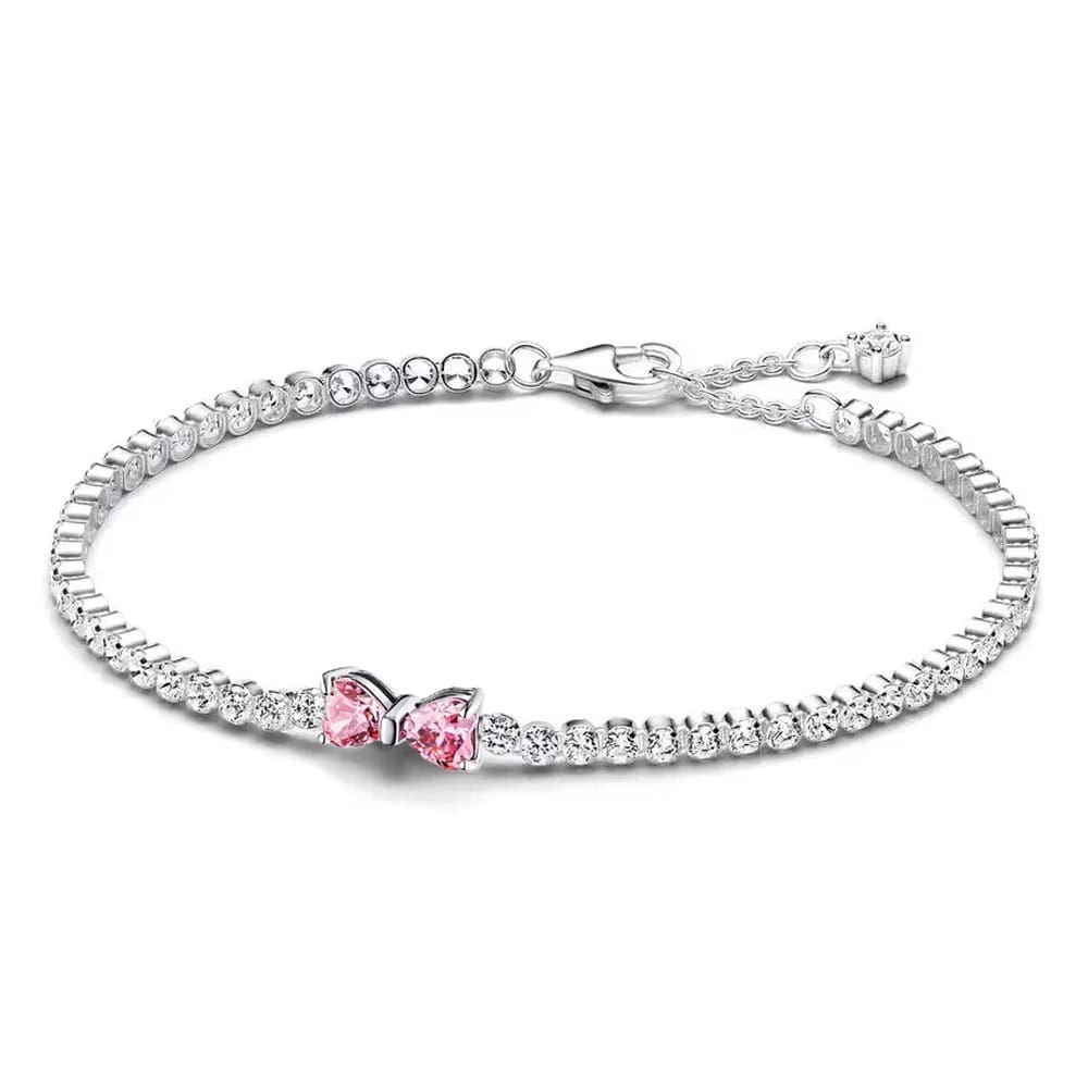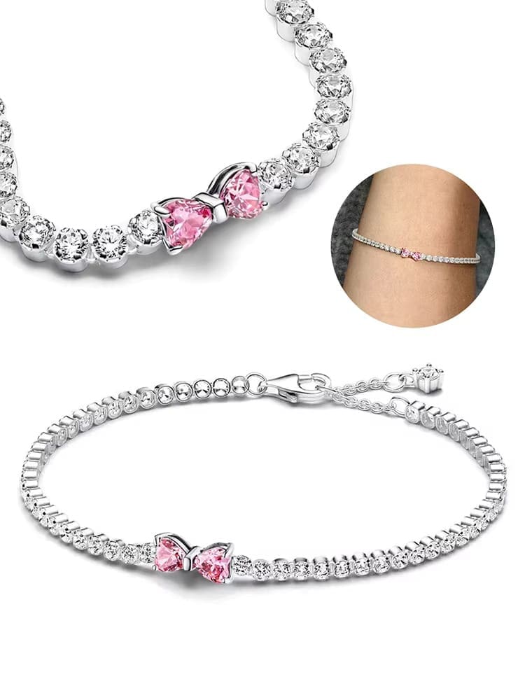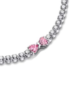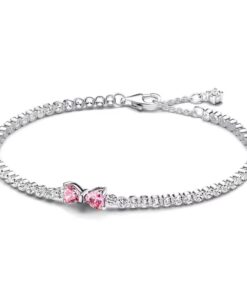 Adjon egy csipetnyi eleganciát és nőiességet ékszerkollekciójához ezzel a gyönyörű karkötővel, amely tökéletes bármilyen különleges alkalomra. Ez a finom, sterling ezüstből készült darab kifinomult dizájnnal rendelkezik, elegáns masni/szív motívummal, amelyet apró cirkóniakristályok díszítenek a látványos hatás érdekében.