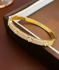 Elegáns négylevelű virágos karkötő cirkóniummal – Vintage design francia ékezetekkel