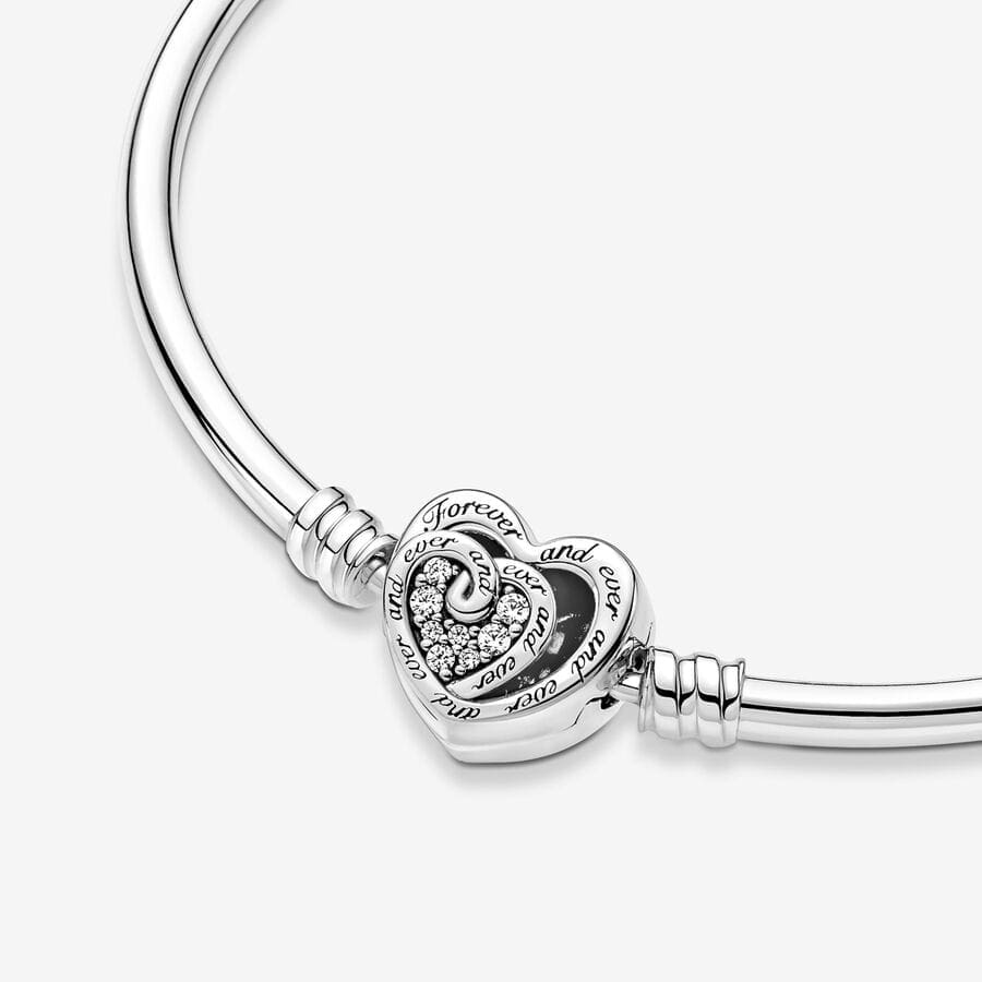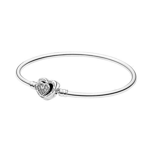 A kiválóan finom ezüstből készült karkötő két elegánsan formázott szívet örökít meg, amelyek az érzések végtelen táncában egyesülnek. Két lélek közötti köteléket szimbolizálja – legyen szó akár a partnerek közötti szerelemről, egy igaz barátság melegéről vagy egy szeretett személy iránti háláról.