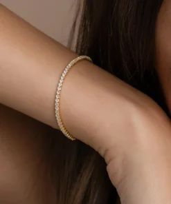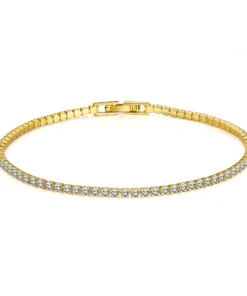 Ez a klasszikus teniszkarkötő sterling ezüstből tökéletes kiegészítő az elegáns és kifinomult megjelenéshez. Minden egyes 2 mm-es cirkóniakő gyémántként tükrözi vissza a fényt, fényűző és kifinomult hatást keltve.