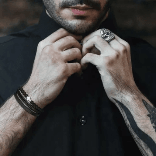 Vintage Multi-Strat karkötő férfiaknak – fekete bőr, kereszt és tigrisszem