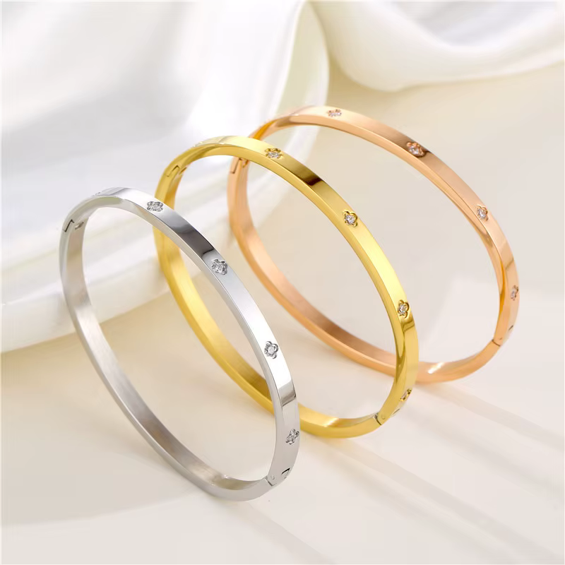 Minimalista rozsdamentes acél karkötő cirkóniával – arany és ezüst színben kapható