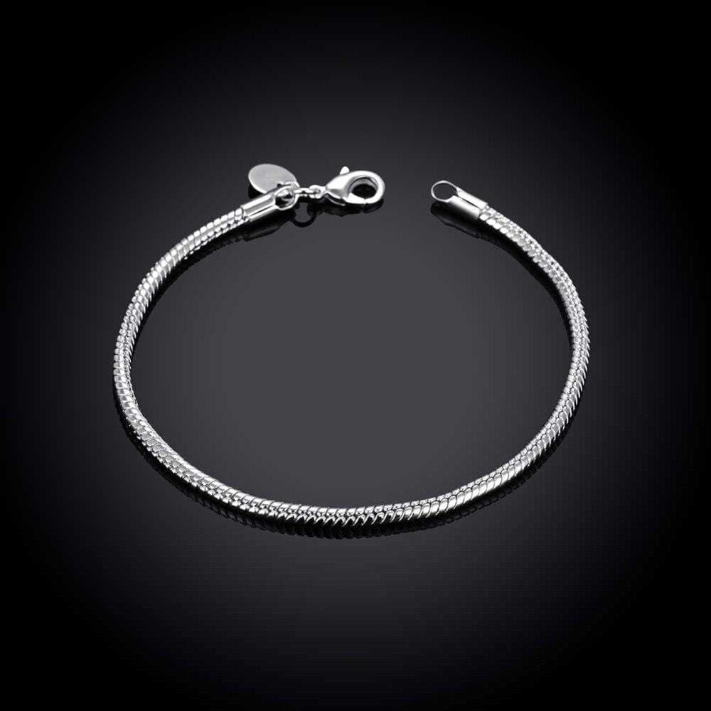 Adj egy kis stílust és kifinomultságot a kiegészítő gyűjteményedhez ezzel a prémium sterling ezüst karkötővel. A modern 4MM-es kígyóláncos kialakítással rendelkező karkötő tökéletes választás nőknek és férfiaknak egyaránt. Akár mindennap, akár különleges eseményeken viseli, kifogástalan eleganciájával és minőségével biztosan feltűnést kelt.