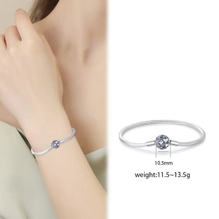 Fedezze fel az eleganciát és a sokoldalúságot ezzel a sterling ezüst karkötővel, amely tökéletes személyre szabott talizmánok és bűbájok hozzáadására. Ez a karkötő kompatibilis a Pandorával és más hasonló típusú charmokkal, így ideális választás egy egyedi és jelentőségteljes ékszer elkészítéséhez.