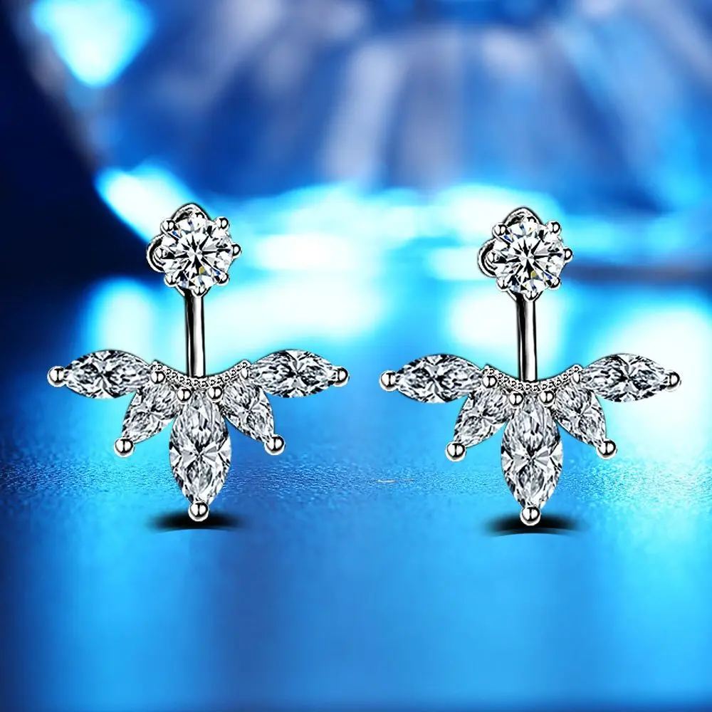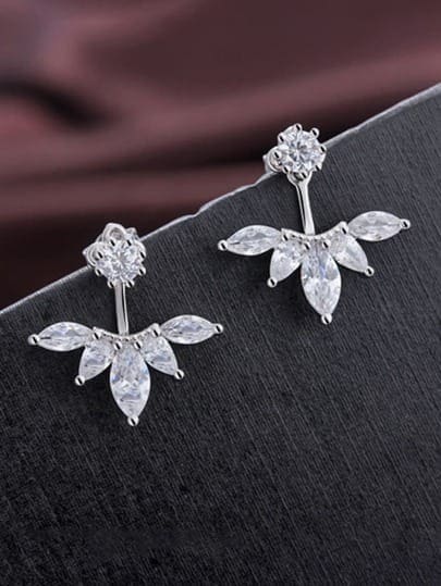 Ezüst fülbevaló cirkóniával – virágmintás, 2féleképpen viselhető