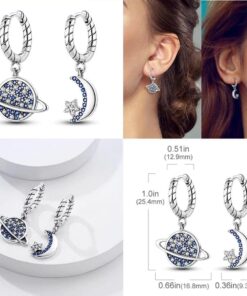 Fedezd fel az éjszakai égbolt varázsát ezekkel a finom fülbevalókkal, amelyeket a Hold és a kék bolygó ihletett. A finom sterling ezüstből készült fülbevalók titokzatos és kifinomult hangulatot kölcsönöznek bármilyen öltözéknek, és tökéletes választás az egyedi részleteket kedvelő nők számára.