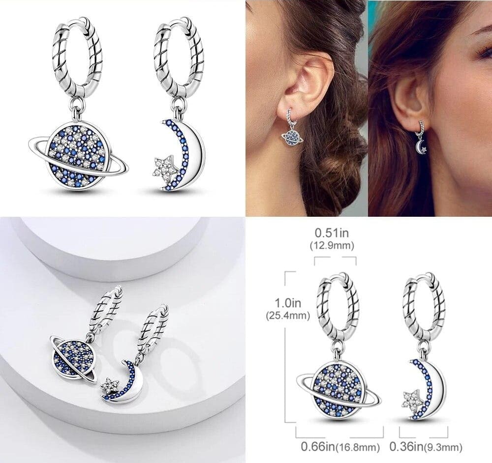 Hold és kék bolygó fülbevaló – Kozmikus elegancia ezüstből