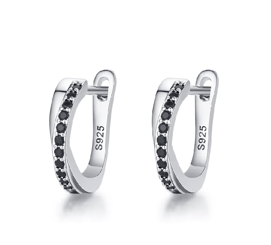 A kifinomult egyszerűség új formát ölt a „”Noir Elegance”” fülbevalókban – egy pár ezüst ékszer, amely harmonikusan ötvözi a klasszikus eleganciát a modern, titokzatos vonásokkal. A finoman megmunkált fülbevalók fonott kialakításúak, és csillogó fekete kövek finom vonalával díszítettek, amelyek mélységet és kifinomultságot kölcsönöznek bármilyen öltözéknek.