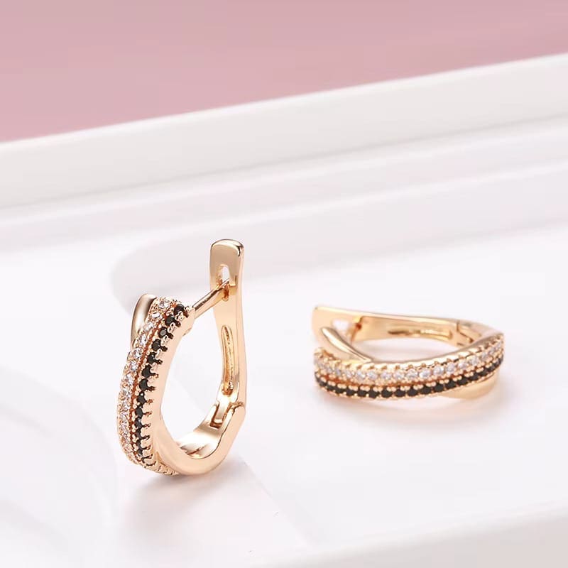Fülbevaló , Royal Cross, Vintage luxus rózsa arany és cirkon fülbevaló