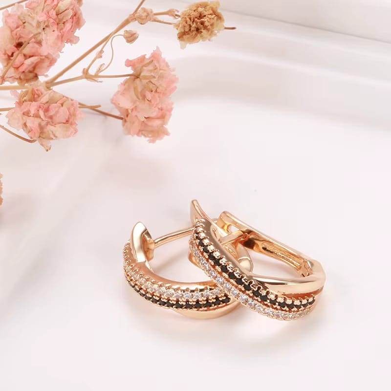 A rózsaarany meleg árnyalataiba burkolva, tökéletesen kiegészítve a fekete és fehér árnyalatú természetes cirkóniákkal, amelyekkel a kontraszt minden szemet megragad.