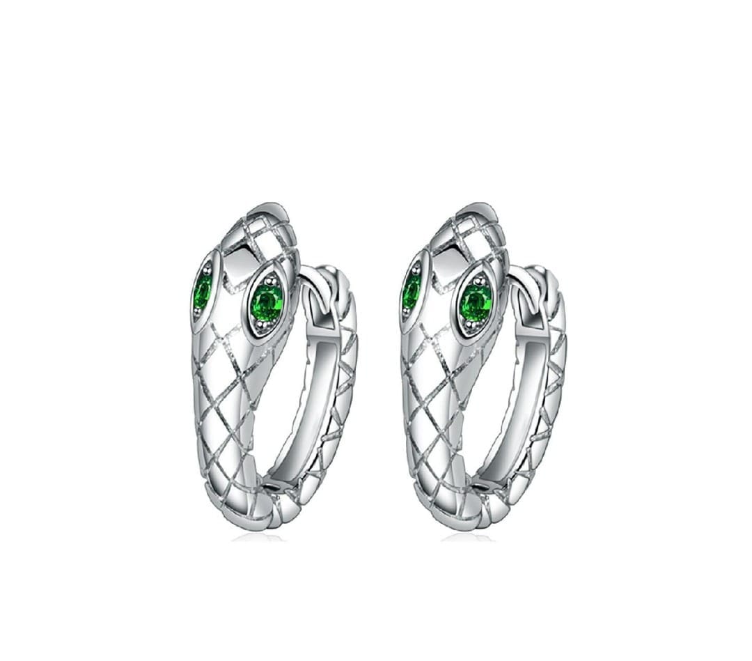 Inspiráljon erőt és nőiességet ezekkel a kígyó alakú statement fülbevalókkal. A smaragdzöld színű szemek egy csipetnyi titokzatosságot és kifinomultságot kölcsönöznek, így ezek a fülbevalók egyedi választássá válnak, tökéletesek a nők számára, akik ki mernek tűnni a tömegből.