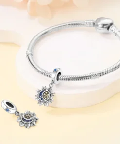 Ezüst charm – Nap és Hold színes kristályokkal