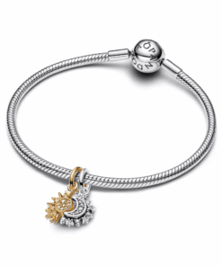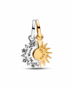 Fedezd fel az egyensúly és a kapcsolat tökéletes szimbólumát: a Nap és a Hold együtt egy finom, kettéosztható charmban. A finom részletekkel és dekoratív gyöngyökkel díszített, sterling ezüstből készült medál egy kis varázslatot kölcsönöz bármelyik karkötőnek.