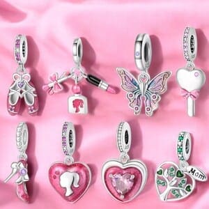 Adj egy csipetnyi nőiességet és nosztalgiát a karperecedhez ezzel az imádnivaló, élénk rózsaszín szív charmdal, amelyet egy Barbie-stílusú lány sziluettje díszít. A rózsaszín és fehér kristályokkal ékített zárógyűrűn ez a kiegészítő tökéletes a divat, az édes emlékek és a játékos részletek szerelmeseinek.