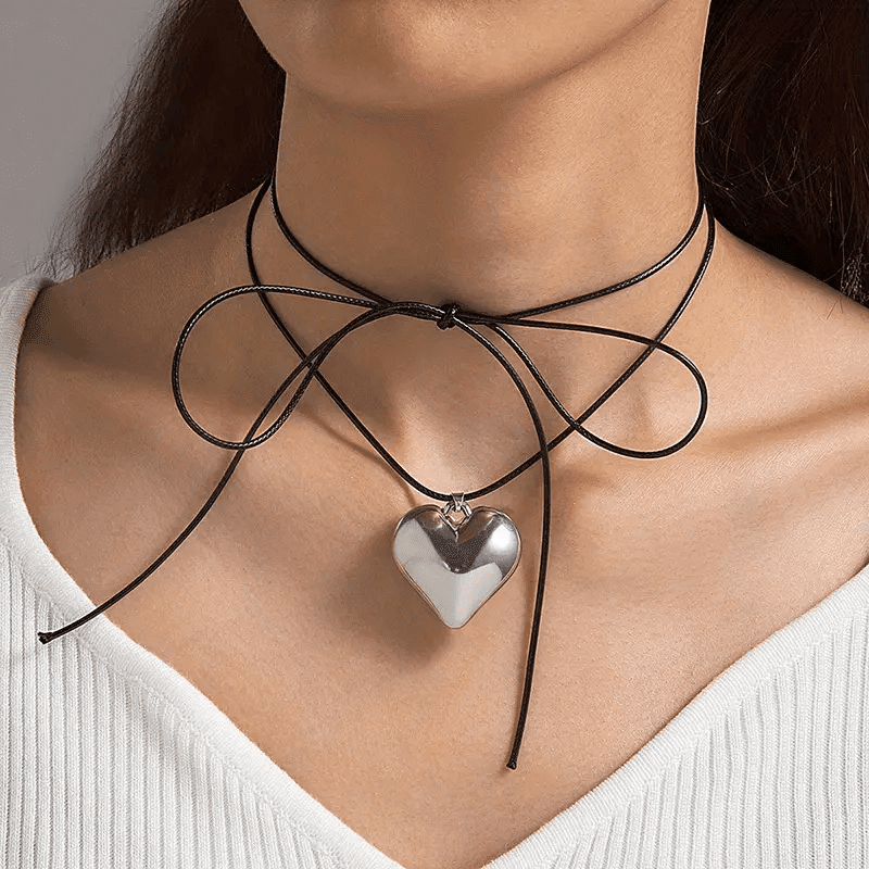 A szenvedély és az elegancia szimbóluma, ez a nyaklánc tökéletes választás annak a nőnek, aki finom részletekkel fejezi ki érzéseit. A szív alakú medállal ellátott, gyönyörű üvegből készült, állítható textil zsinórral ellátott kiegészítő titokzatosságot és romantikát kölcsönöz minden öltözéknek.