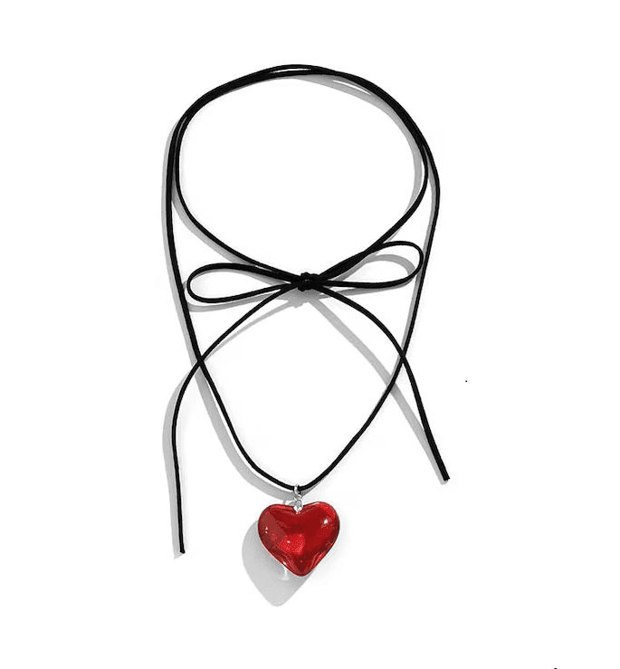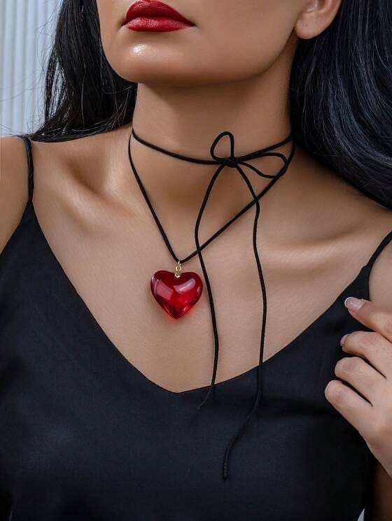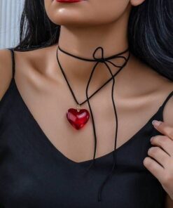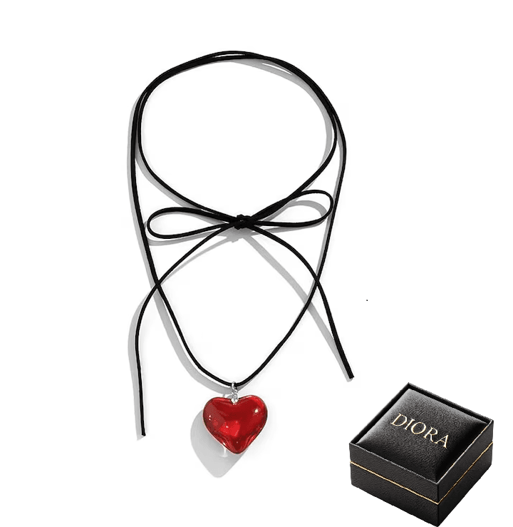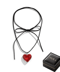 A szenvedély és az elegancia szimbóluma, ez a nyaklánc tökéletes választás annak a nőnek, aki finom részletekkel fejezi ki érzéseit. A szív alakú medállal ellátott, gyönyörű üvegből készült, állítható textil zsinórral ellátott kiegészítő titokzatosságot és romantikát kölcsönöz minden öltözéknek.