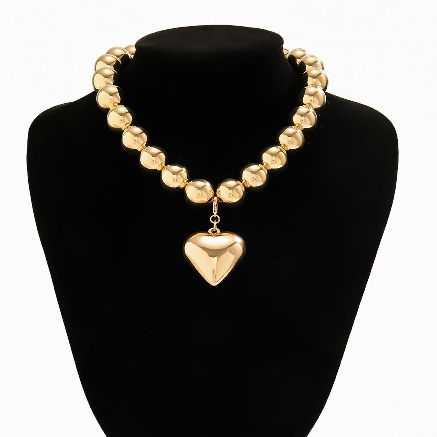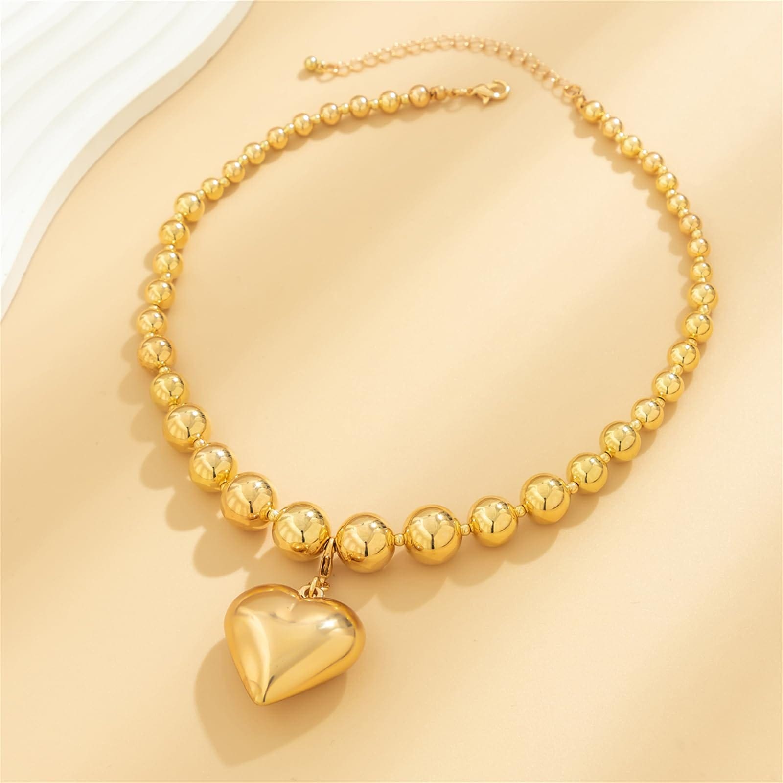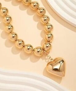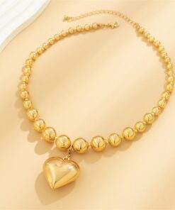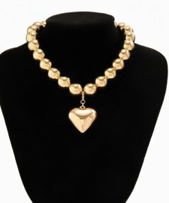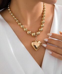 Adj egy csipetnyi eredetiséget az öltözékedhez ezzel a személyre szabott divatos nyaklánccal, amelyet olyan nőknek terveztek, akik szeretnének kitűnni a tömegből. Egyedi kialakítású, gömb alakú láncszemekkel és kerek, punk stílusú gyöngyökkel ellátott, nagyméretű clavicular láncot tartalmaz, amelyet egy szív alakú, geometrikus részletekkel díszített medál egészít ki.