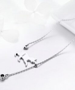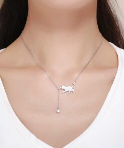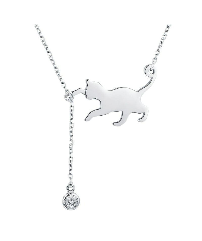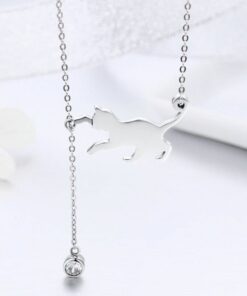 Acest colier fin din argint are un pandantiv adorabil în formă de pisicuță jucăușă, prinsă într-un lanț delicat ce adaugă farmec oricărei ținute.