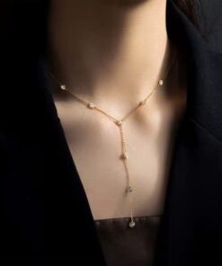 A hosszú lánccal kiegészített choker kialakítás kifinomult és modern hatást kelt, a finom részletek pedig a nőiesség megnyilvánulásává teszik ezt a nyakláncot.