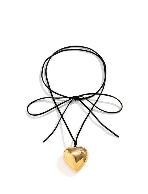 Légy merész, légy más – az Aranyszív nyaklánc tökéletes választás a vagány és romantikus megjelenéshez. A fekete szövetzsinóron lógó, csillogó aranyszínű szív látványos kontrasztot és modern hangulatot kínál retro hatásokkal.