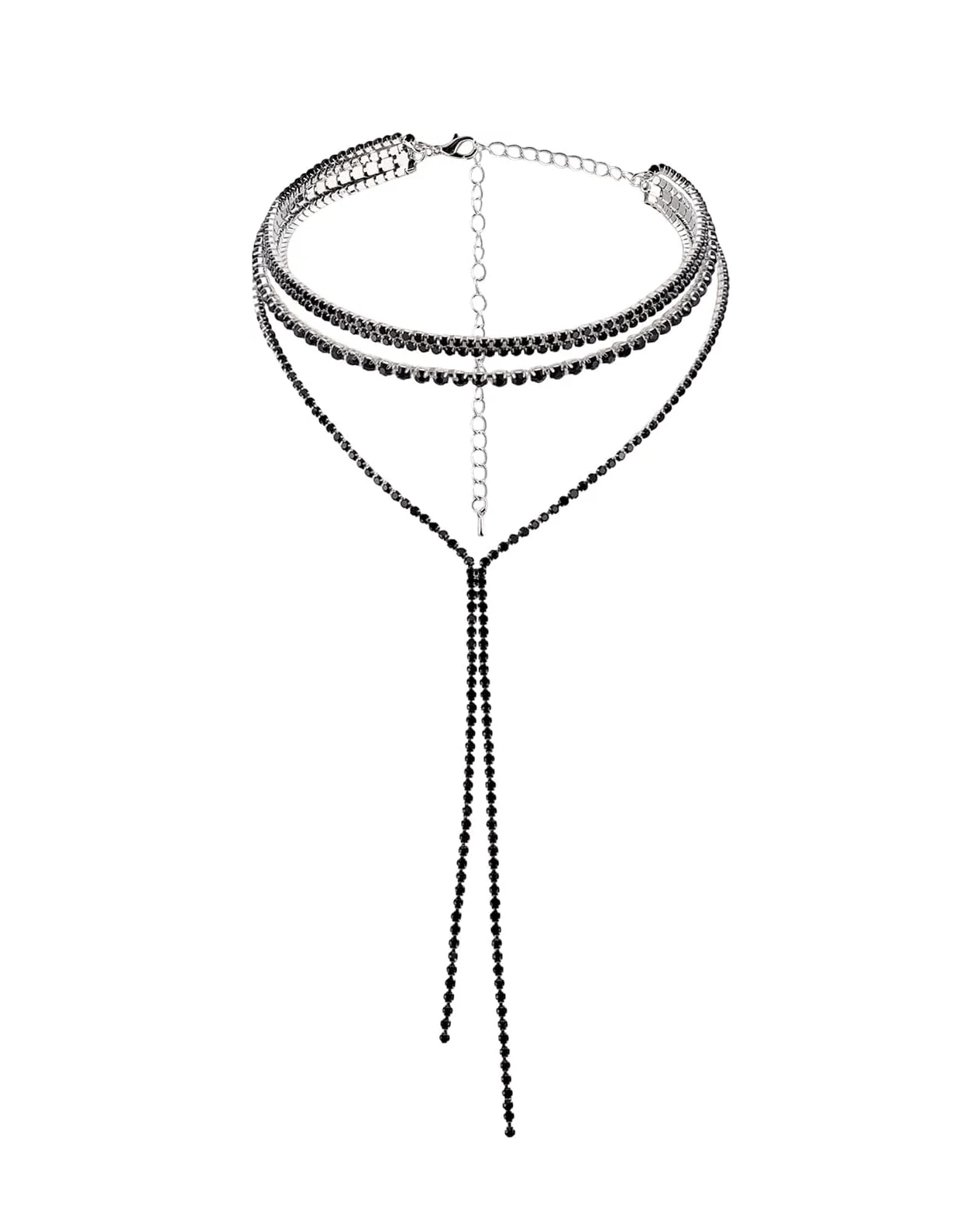 Többrétegű kialakítás choker nyaklánccal + Y-nyaklánc hatás.