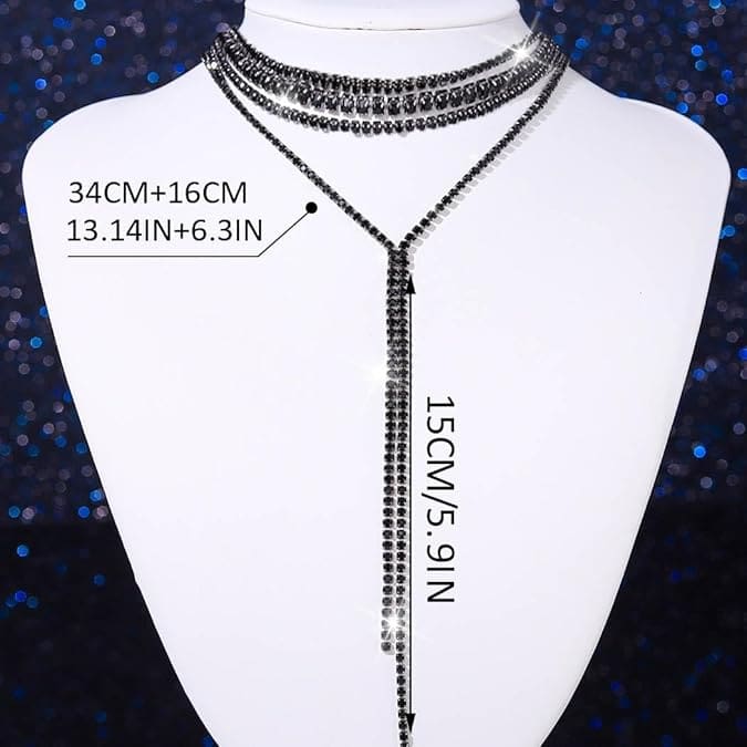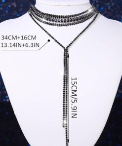 Vonzza minden tekintetet ezzel a látványos, többrétegű nyaklánccal, amely csillogó strasszkövekkel díszített finom rétegekből áll. Modern és kifinomult kialakítása kiemeli a nyakkivágást, kifinomultságot kölcsönöz bármely esti öltözéknek.