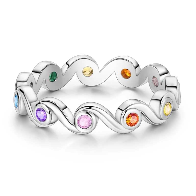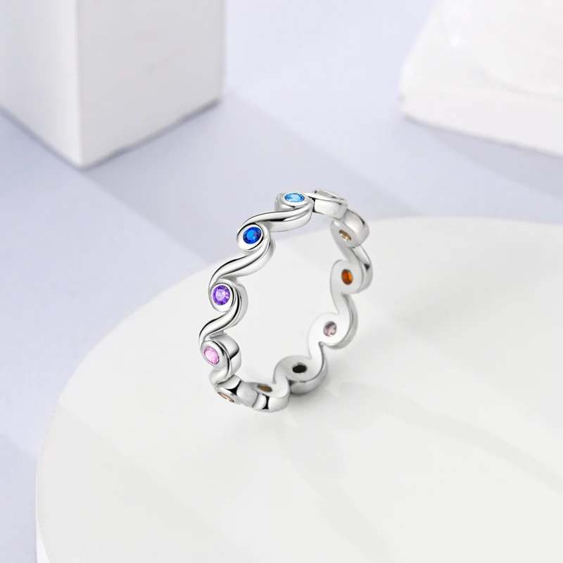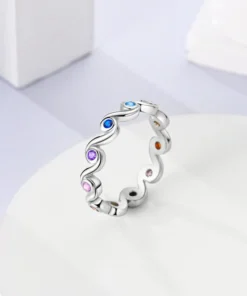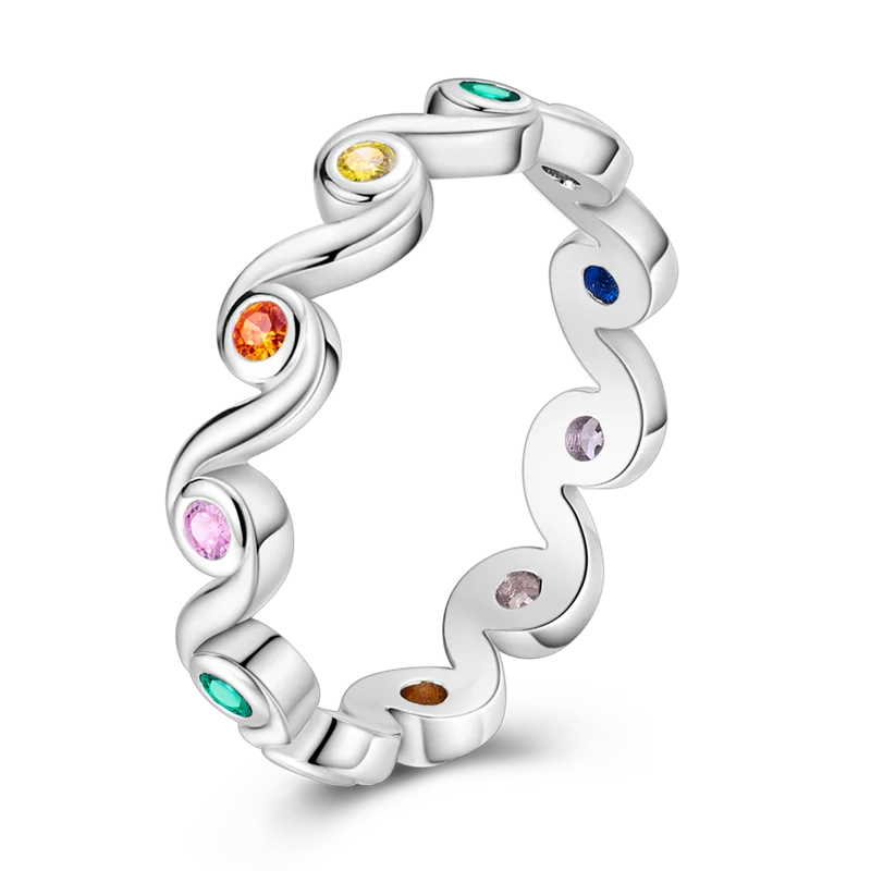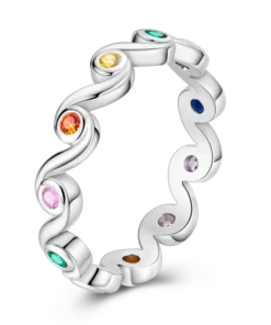 Elegáns gyűrű sterling ezüstből, színes kövekkel díszítve, amelyek színt és kifinomultságot kölcsönöznek minden ruhának. Folyékony, ívelt kialakítása modern és kifinomult megjelenést kölcsönöz neki, míg az élénk árnyalatok kombinációja statement darabbá teszi.