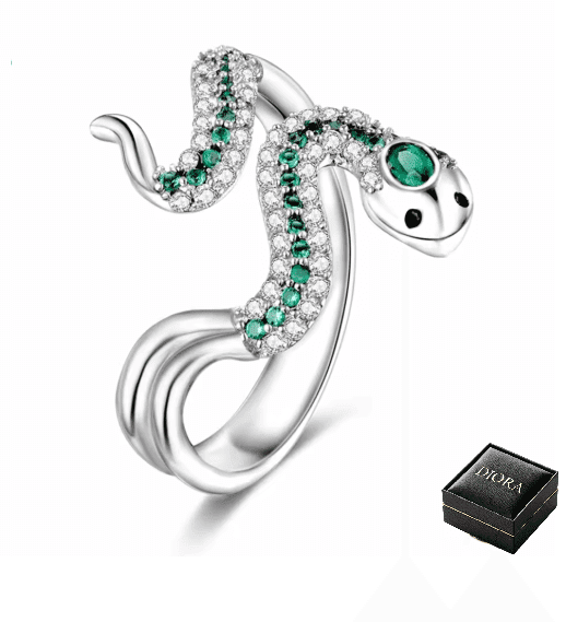 Ez a Diora gyűrű sterling ezüstből készült, statement ékszer, amely alkalmas azoknak, akik szeretik az erős szimbólumokat és az egyedi formatervezést. A kígyó bűbája és titokzatossága ihlette, tökéletes kiegészítő, amely kifinomult és titokzatos jelleget kölcsönöz bármely öltözéknek.