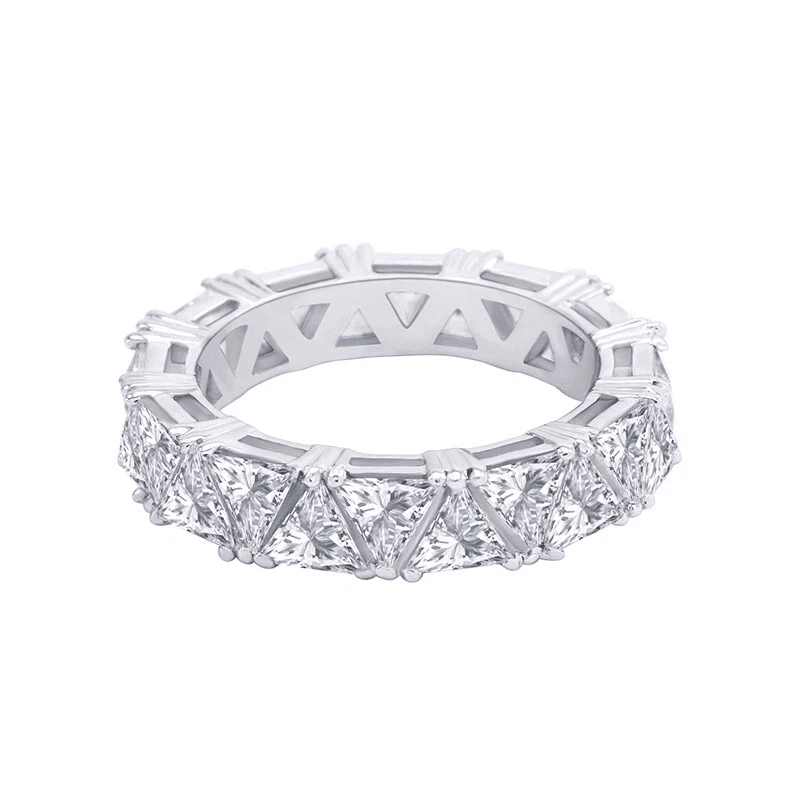 Ez a fényűző sterling ezüst gyűrű újradefiniálja a kifinomultságot kifinomult dizájnjával és kifogástalan AAA cirkóniás csillogásával. Egyedülálló háromszög alakja minden szögből megragadja a fényt, látványos hatást és egy csipetnyi exkluzivitást kínálva bármilyen öltözékhez.