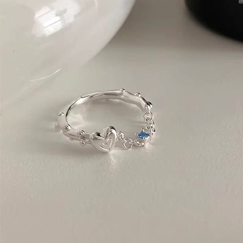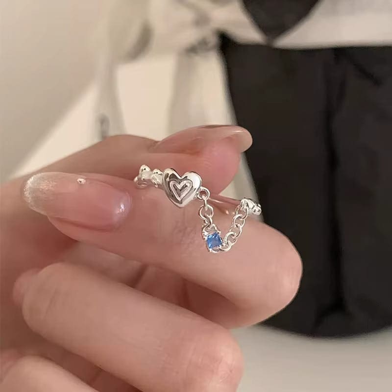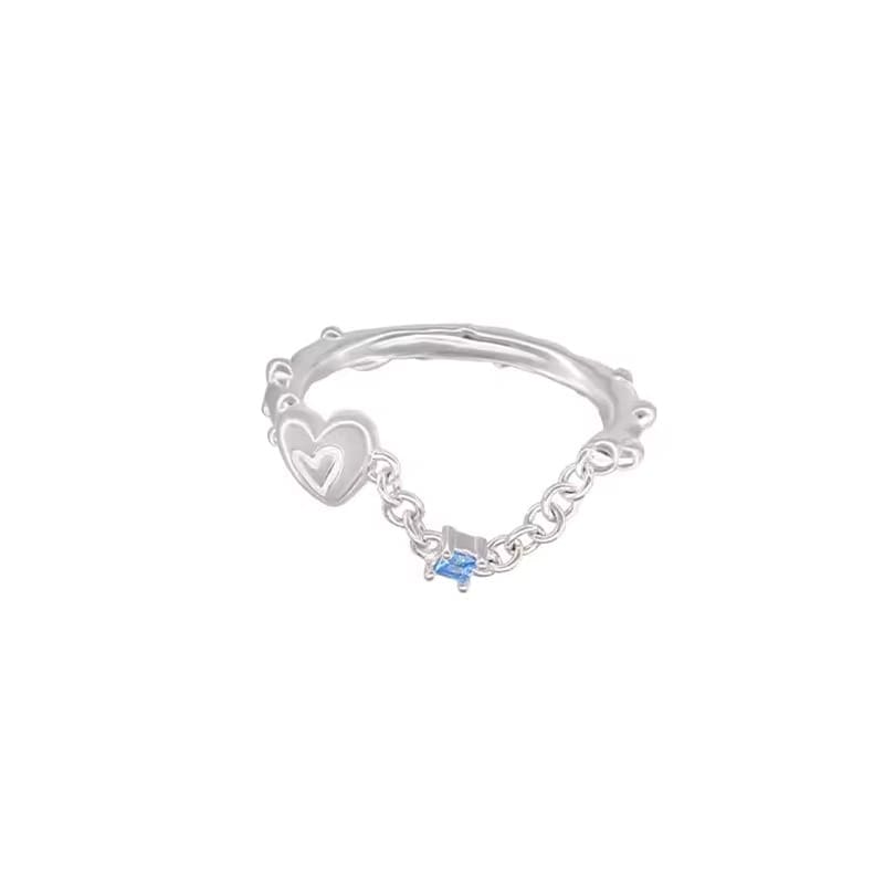 Ez az állítható sterling ezüst gyűrű tökéletesen ötvözi a szabálytalan geometriai mintát egy kifinomult részlettel: a finom lánccal, amely modern és merész hatást kölcsönöz. A központi elem, egy finom kis szív, a kifinomultságot és az erős kapcsolatokat szimbolizálja, így ez a gyűrű egy statement kiegészítő.
