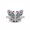 A macskák és az elegancia szerelmeseinek tökéletes választás ez a gyönyörű ezüst gyűrű ! A finom mancs szimbólumokkal, egy játékos cicával és csillogó kövekkel díszített kiegészítő a szépséget és a kismacskák iránti szeretetet ötvözi.