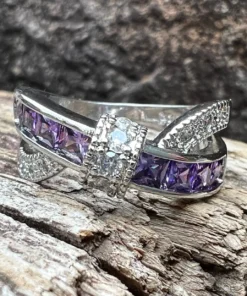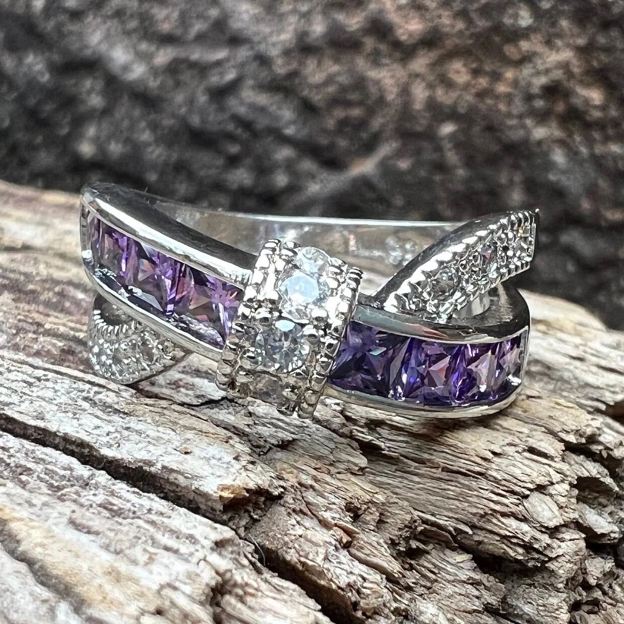 Elegáns a legtisztább formában ezzel a boho-chic dizájnnal és egy lila cirkóniával díszített ezüst gyűrűvel, amely minden mozdulatnál megragadja a fényt.