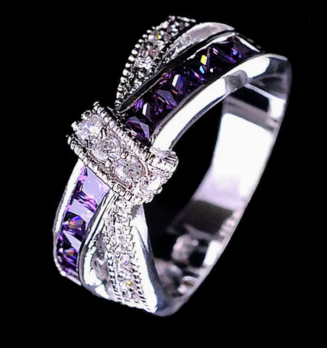 Kő: lila cirkónia – intenzív, ametisztszerű csillogás.