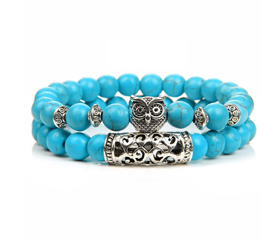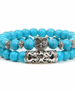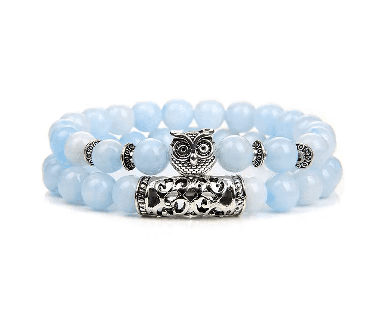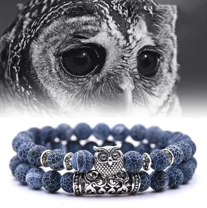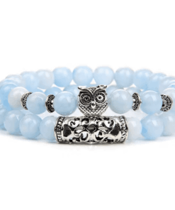 2 db Energetikus drágaköves karkötő bagoly medállal – Elegáns és védelmet nyújtó karkötő