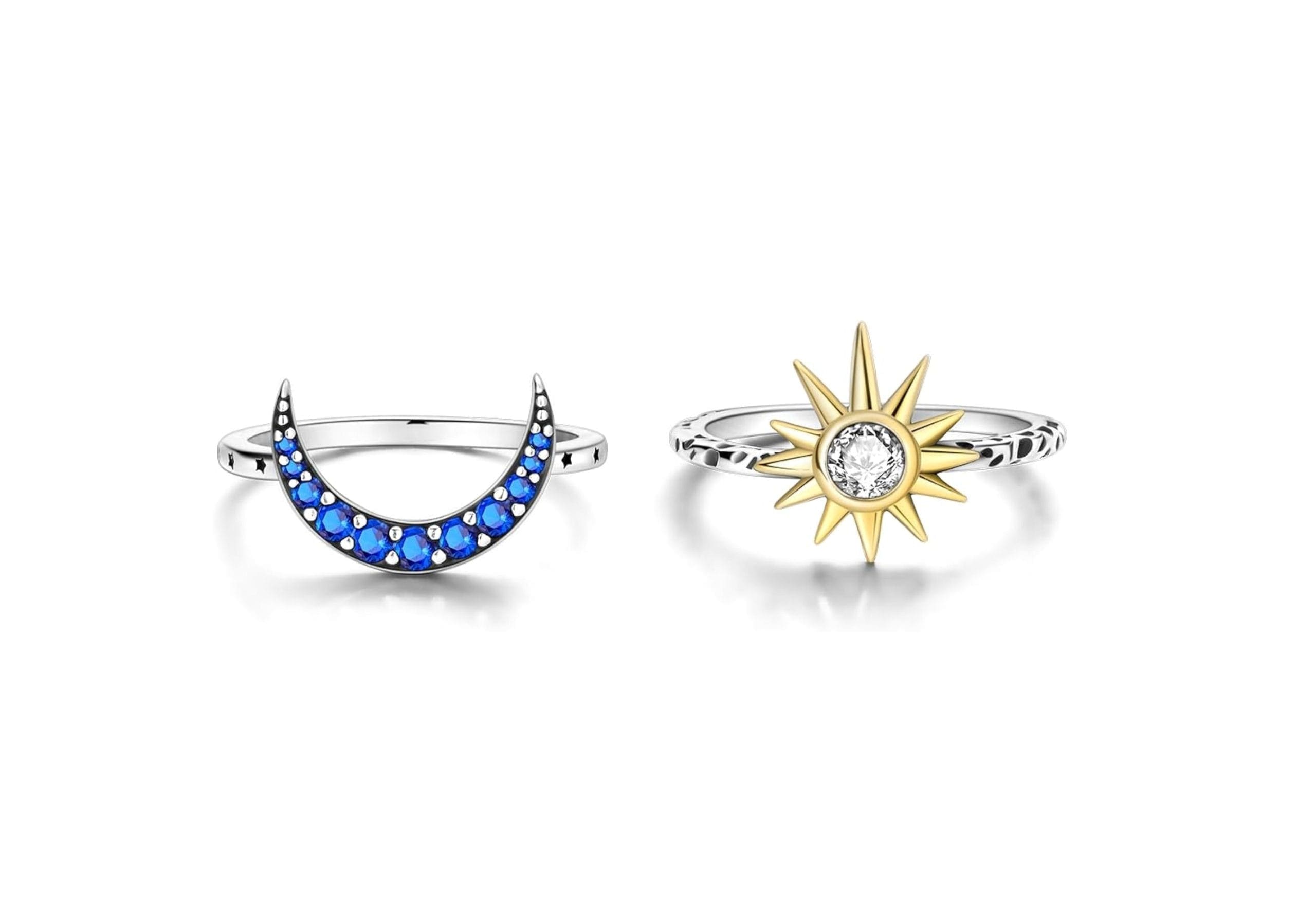 2 db 925 Sterling ezüst gyűrűk – Nap és csillagok, cirkóniummal, hipoallergén
