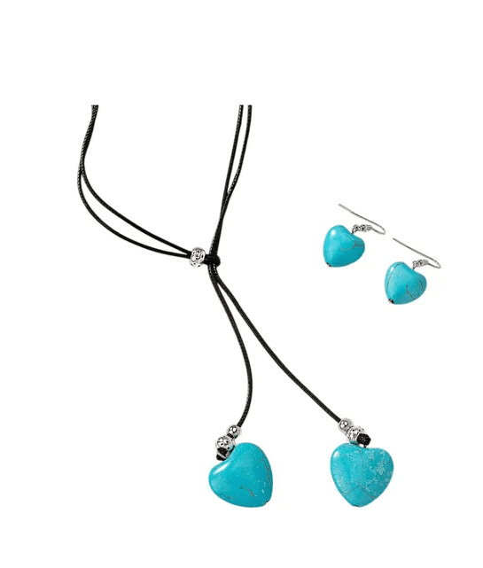Természetes kő szív boho ékszer készlet – állítható nyaklánc + hozzáillő fülbevaló