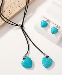Adj egy csipetnyi természetes nőiességet az öltözékedhez ezzel a boho-stílusú ékszer szettel, amely egy állítható nyakláncból és egy pár szív alakú természetes kőből készült fülbevalóból áll. Az egyszerű, mégis elbűvölő kialakításnak köszönhetően ez a szett ideális választás mind a mindennapi öltözködéshez, mind a különleges pillanatokhoz.