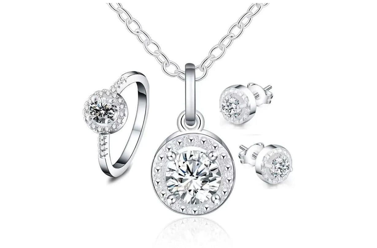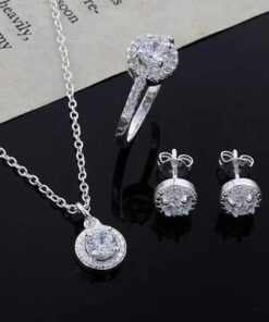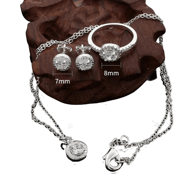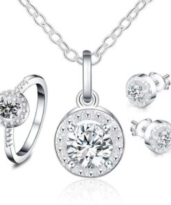 A szett tartalmaz: nyakláncot, fülbevalót és gyűrűt – elegáns összeállítás minden kifinomult nő számára!